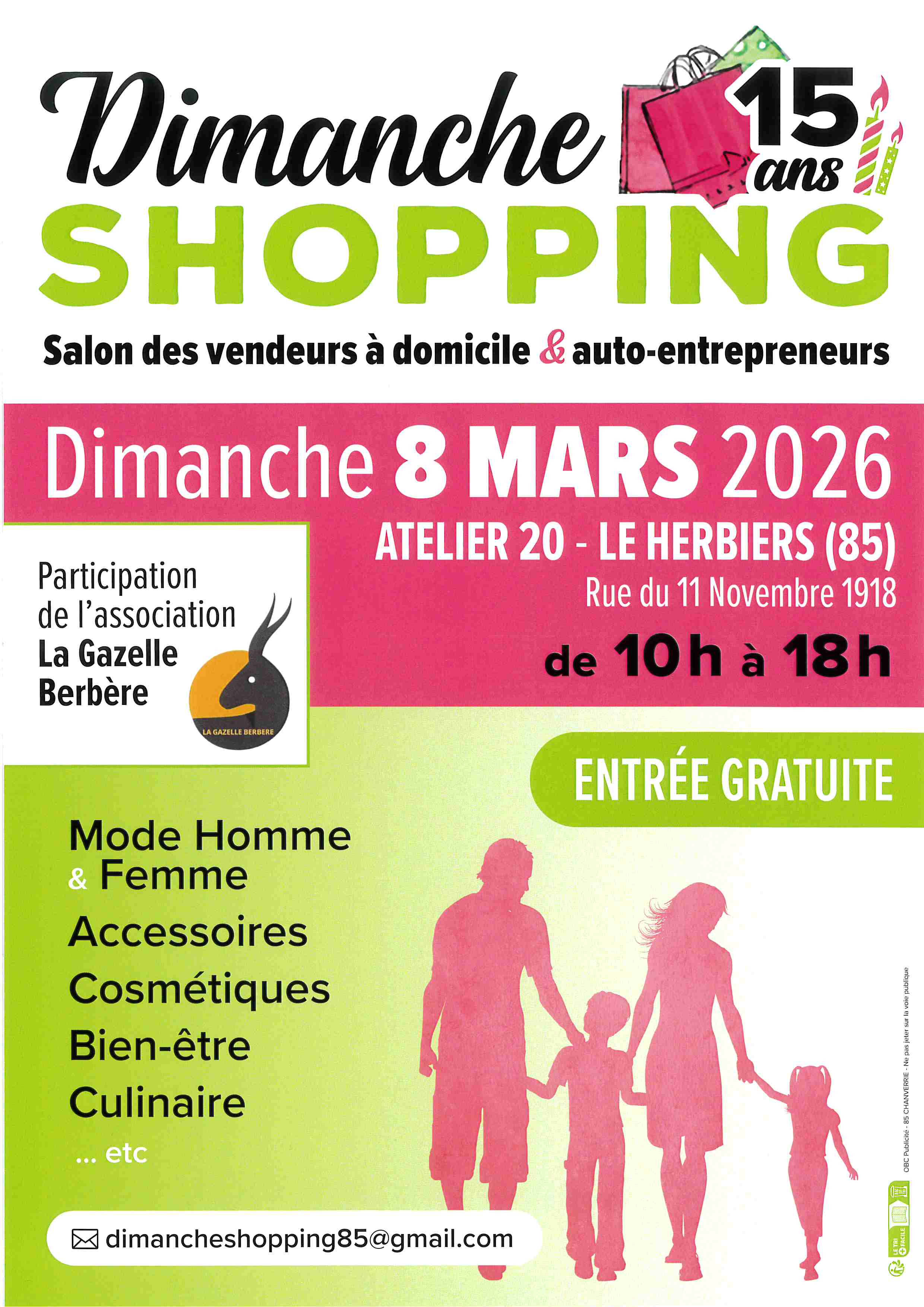 Dimanche Shopping pour sa 15ème année. A l'atelier 20, rue du 11 novembre 1918, de 10h à 18h.